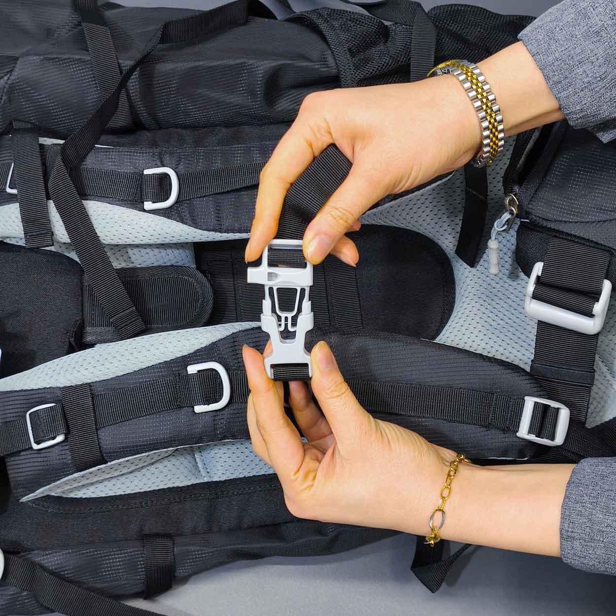 تنظیم اولیه و دقیق: در خانه و پیش از سفر، با بار نسبی، زمان بگذارید و سیستم پشتی قابل تنظیم را دقیقاً با طول تنه خود هماهنگ کنید. سپس کمربند کوله (هارنس) را روی استخوان لگن قفل کرده و بندهای شانه و استرنوم (سینهای) را تنظیم کنید تا کوله کاملاً یکپارچه با بدن حرکت کند.