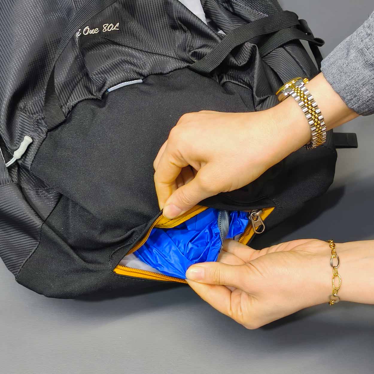 استفاده از کاور ضدآب: در صورت مواجهه با باران یا رطوبت زیاد، حتماً از کاور اختصاصی ضدآب استفاده کنید تا محتویات کوله کاملاً خشک بمانند.